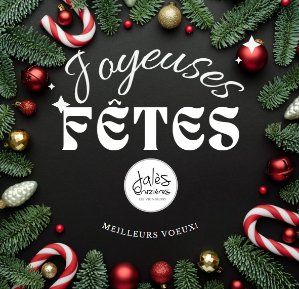 Toute l'équipe Jalès Cruzières vous souhaite de très bonnes fêtes de fin d'année ainsi que tous ses vœux de bonheur, de prospérité et de santé afin que cette nouvelle année devienne un merveilleux millésime ! Merci pour votre confiance et prenez soin de vous